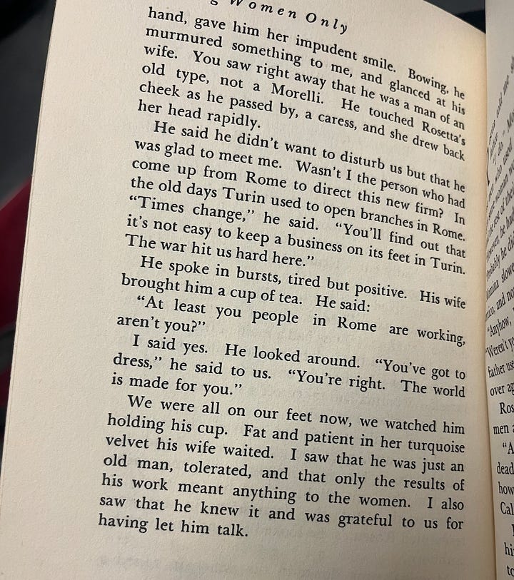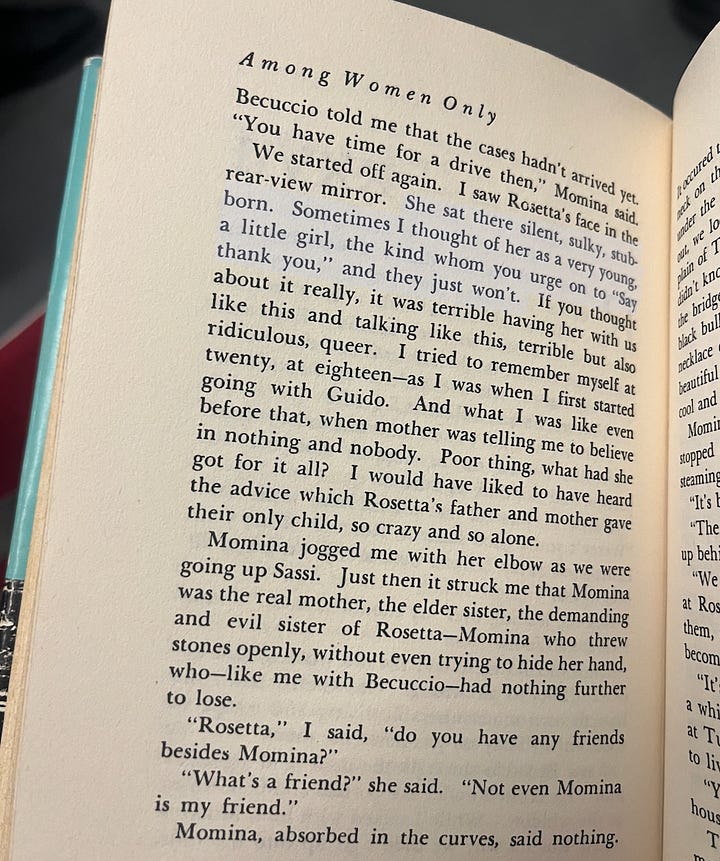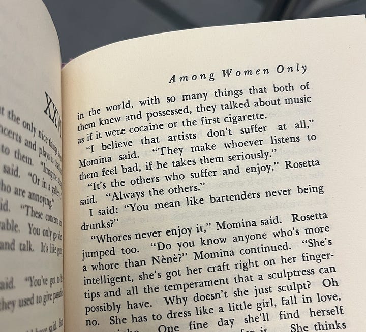 Among Women Only begins from the point of a young girl’s suicide and follows frivolities and banalities of her social circle. All of this comes through the eyes of the older (i.e., 34-year-old) Clelia, who has moved back to her hometown of Turin post WWII to open a boutique… I like the talk of shop windows, couturiers, etc. Lamentably I find myself getting tangled up in Pavese’s biography and continue to linger on the fact that he left this book as his last work, killing himself about a month after its publication, I believe... I say this less because the novel features suicide among its general themes of dissatisfaction, alienation, et al., and more because Pavese uses the conditions of women and girls to emphasize these states, which is interesting to me. He writes both men and women well, gender difference well. Great names: Clelia, Momina, Nènè…