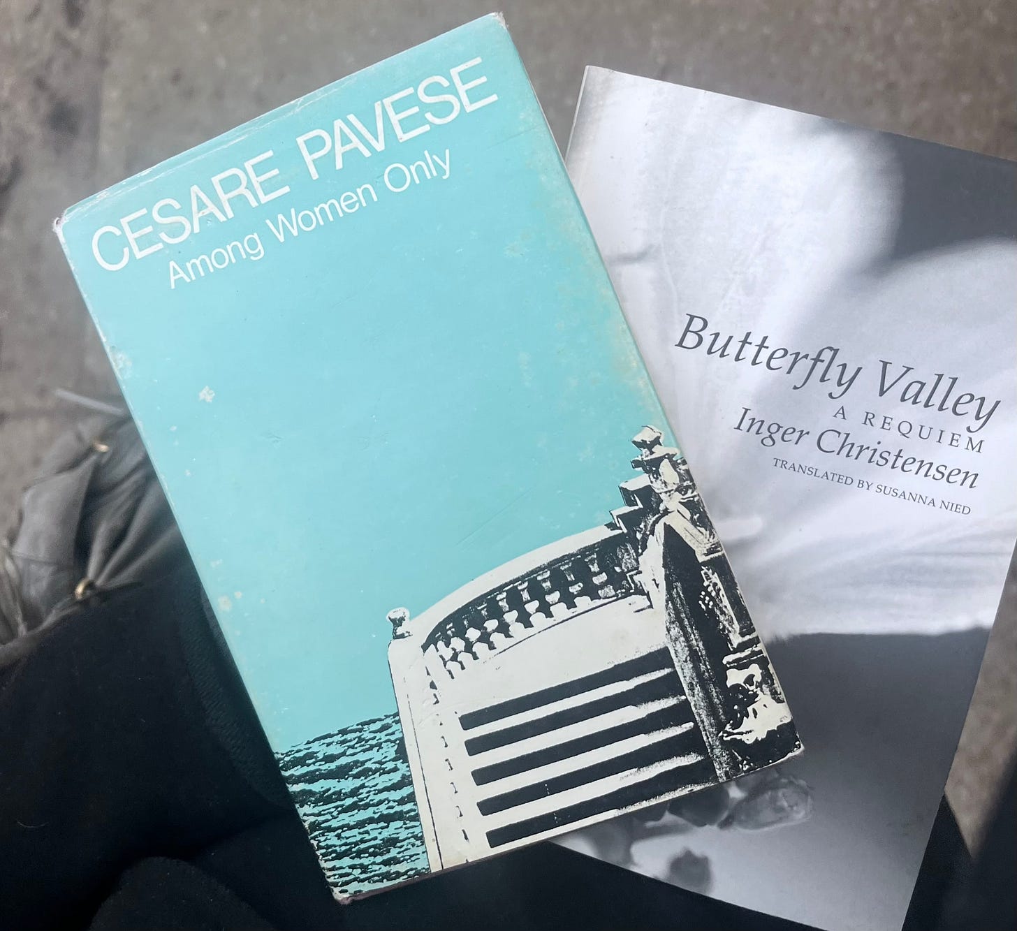 Came across this book on an immaculate hungover Saturday, damp, grey, first warmth (=14 degrees) of the year… took the bus to the other side of town and serendipitously wandered into a one-day book fair where I found a couple pearls, Butterfly Valley and Among Women Only.I think I actually read some of the poem sequences in here once, back in Texas. The first, eponymous section of the book is a run of sonnets, very masterfully constructed, shows Christensen’s (and her translator, Susanna Nied’s) formal precision. Nice to read some verse that is Not Free. Intricate and balanced as a butterfly, extensive and expansive as a valley, to be sure… didn’t love the second set of poems (“Watersteps”), and the third, “Poem on Death,” wasn’t especially memorable to me (or maybe the translation here made it sound a bit trite?). The last sequence, “Meeting” (excerpted below) I am fond of. This is the one I remember reading in the past. Christensen utilizes repetition so poignantly, and these final poems mention March several times, a coincidence of text and reading I’m always happy for