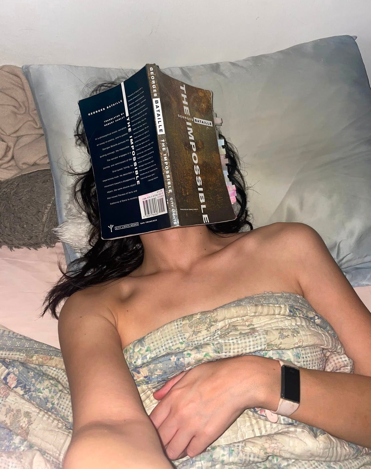 I need to read She by Robert A. Johnson for a project I’m working on. But I have an extensive, ever expanding TBR pile beside my bed. I would also like to finish Nancy Tuana’s Woman and the History of Philosophy, Lacan and the Destiny of Literature, and Eros in Mourning. But also after reading those of you who came before me, I need to read Bachmann’s Malina because I never have! If it’s anything like the love triangle in Dostoevsky’s The Idiot, I’ll have an instant affinity.